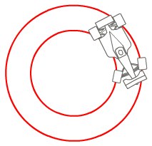 Рисунок изображает автомобиль, идущий через поворот (в данном случае, поворот бесконечен). Красные линии изображают путь, по которому движутся колеса. Вы можете заметить, что внутренние колеса автомобиля следуют по окружности меньшего диаметра, чем внешние колеса.